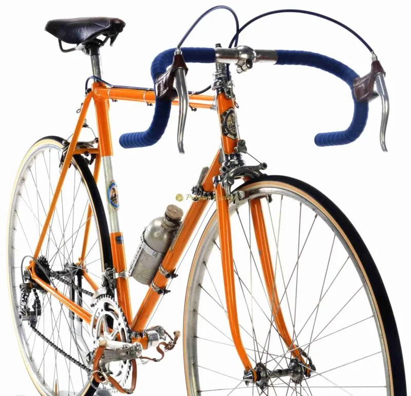 Happy to present another legendary Italian steel racing machine – BARTALI Corsa by Galmozzi, which dates back to early 1960s. The frame is made of light steel tubing and equipped with Campagnolo Record 1st gen groupset, Universal 61 brakes, and TTT special stem, Easy to recognize typical Galmozzi head lugs and fork crown, beautiful Bartali headbadge and decals on downtube and seat tube.
