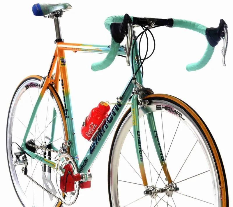 Proudly presenting a legendary racing machine Bianchi Mega Pro Reparto Corse, used by Italian rider Roberto Conti of Mercatone Uno Team. He helped Marco Pantani to win Giro and Tour in 1998. Roberto Conti also signed a bike.