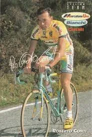 Roberto Conti (born 16 December 1964) is an Italian former road cyclist, whose biggest win came in the 1994 Tour de France as he won the Alpe D’Huez stage after an impressive break-away. He rode for Mercatone Uno Team in years 1997-1999.