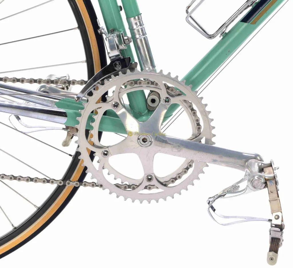 Proudly presenting this Bianchi‘s racing machine, the Specialissima X4, made by Bianchi’s Reparto Corse department back in 1987. Extraordinary frameset is made of Columbus SLX tubing, shining in original celeste paintjob. Fully built with pantograph Campagnolo C Record 1st gen groupset, iconic Campagnolo Cobalto brakes, Cinelli cockpit, Mavic SSC wheels and original Silca air-pump. A real X4 (engraved ‘X4’ on a rear brake bridge). No much words needed.