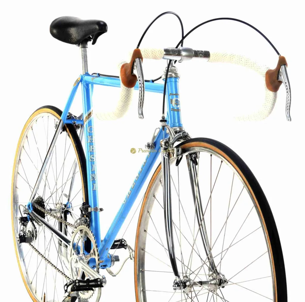 Happy to offer vintage Italian steel machine, Chesini Precision is one of the most representative bikes of Chesini history and their top model of early 1980s. The frame is made of Columbus SL with extraordinary details like Chesini logo and ”Precision” sign engravings on the head tube, bottom bracket shell and seat stays. Completely build with top of the top Campagnolo Super Record groupset. Love at first sight.