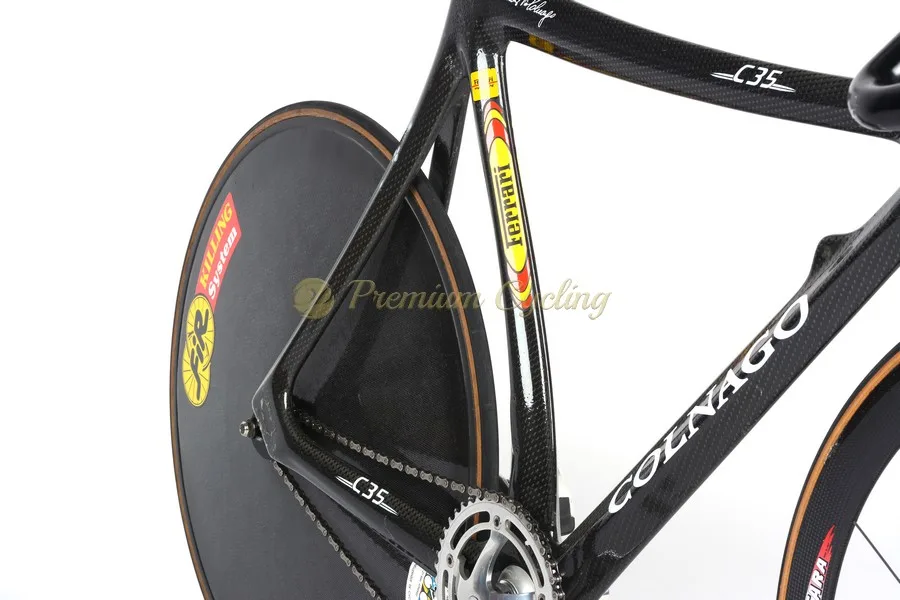 There is quite a few Colnago C35 on the market, but Colnago C35 Ferrari Pista is extremely rare and almost impossible to find. Only 8 bikes were made worldwide and all of them for Italian track national team, and only one size is available.