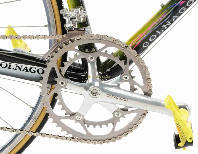 The Colnago C40 won 5 out of 6 editions of Paris-Roubaix in years (1995-2000) and several world champion titles in years 1996-2002. Jacky Durand was a French start of cycling in mid 1990s. He was member of Team Casino in years ’97 and ’98 and rode the Tour de France 1998 on identical bike to the one, we are presenting here.