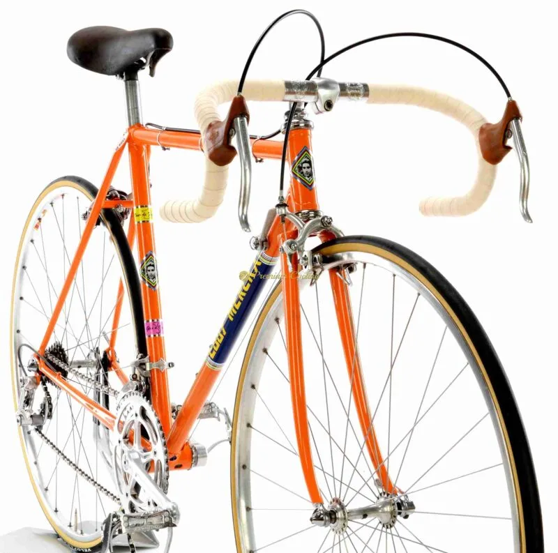 Proudly presenting another iconic Italian racing machine, the 1973 DE ROSA Eddy Merckx shinning in famous Molteni Team paintjob. The frame is work of art and was the reference by which other steel frames were judged back in early 1970s. Fully build with Campagnolo Nuovo Record groupset, Cinelli stem and handlebar, Fir clincher wheels.