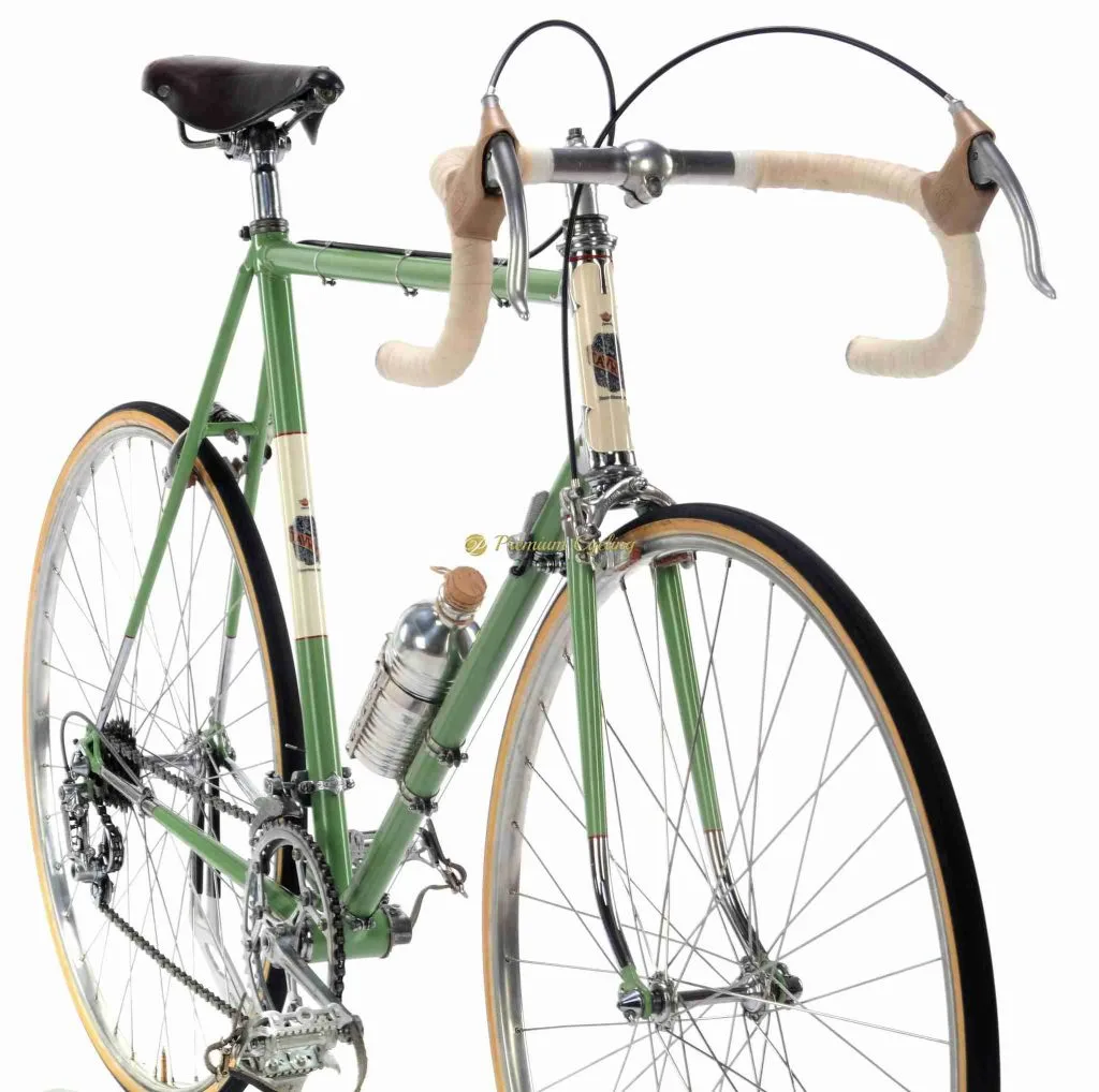 Here we are proudly offering a legendary Italian steel racing machine – TAURUS Corsa, which dates back mid 1950s. Superb frameset is made of Reynolds tubing, extraordinary lugs, Campagnolo drop-outs. Built with Campagnolo Gran sport groupset, original Brooks saddle, Universal brakes, Ambrosio Champion cockpit, NiSi rims. A museum piece!