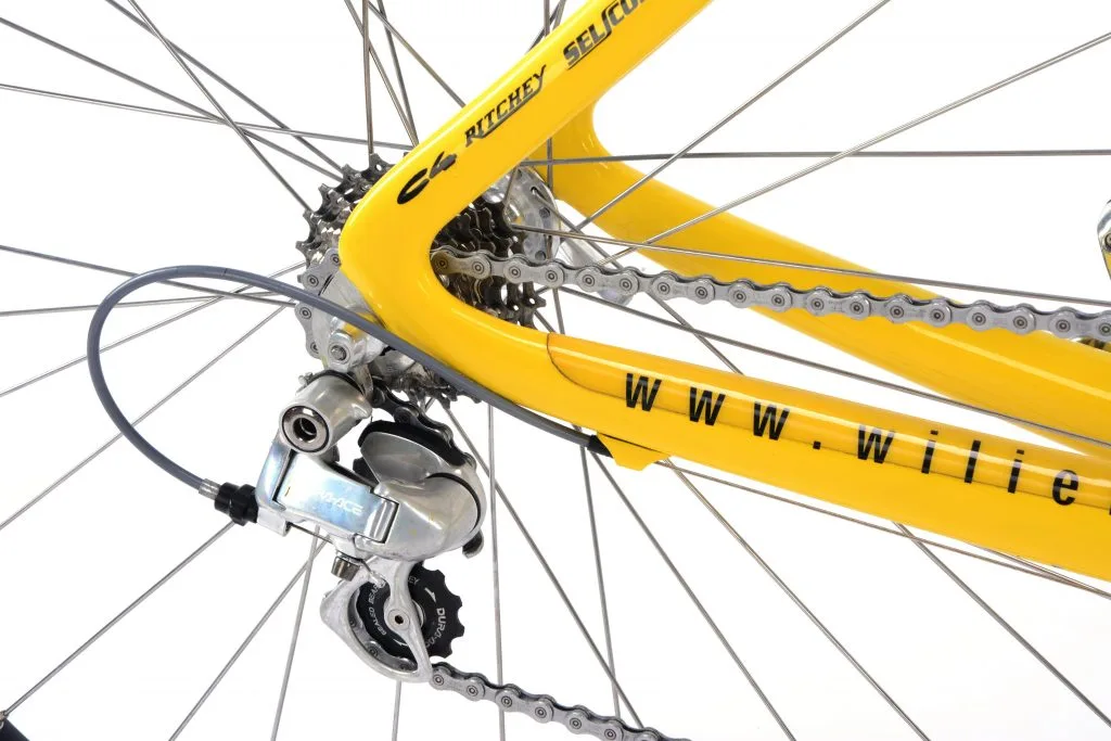 Proudly presenting one of the most iconic bikes in cycling history, the WILIER Easton – almost identical to Marco Pantani’s bike from 1997. The full carbon frame is shinning in beautiful Mercatone Uno paintjob, build with Shimano Dura Ace 25th Anniversary groupset and very special parts like Selle Italia Flite Titanium Pantani saddle, Selcof seatpost. At their thinnest point, these spokes has diameter of 1.2mm! Only top of the top components were good enough for ”The Pirate” Selcof Titanium seatpost, Pantani’s personalized TCS saddle, 3T cockpit, LOOK pedals, so all exact components as used by Marco Pantani at the 1997 Tour de France.